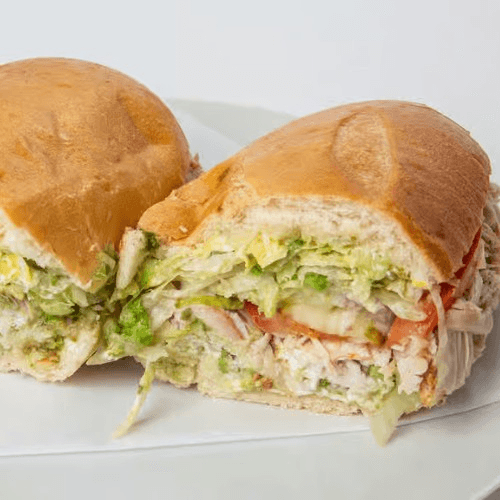 Hot turkey, Ortega chili, Lettuce, Tomato, Avocado, Cajun Garlic Aioli, Havarti cheese, Onion, served on Sourdough roll