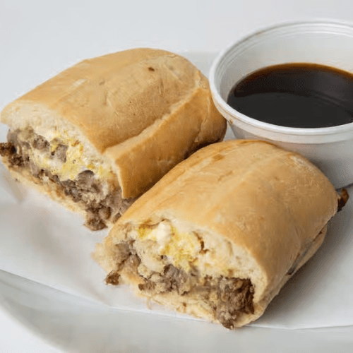 Roast beef, Mayo, New York mustard, Pepper jack cheese, White roll, Side of au jus